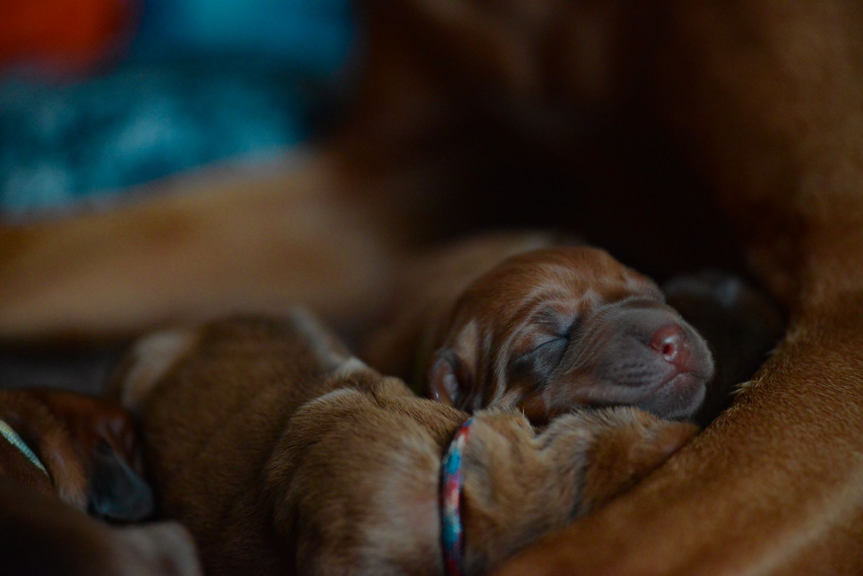 Am 13.03.2025 erblickten sieben kleine Wunder das Licht der Welt: Kiwi und Hondou sind nun stolze Eltern von vier Mädchen (darunter ein süßes Liver-Mädchen) und drei Jungs (zwei ebenfalls Liver-Farben).Jedes der kleinen Gruppchen brachte kräftige Geburtsgewichte zwischen 520g und 590g auf die Waage, und bereits am zweiten Tag durften wir voller Freude beobachten, wie jeder Welpe über 100g zunahm!