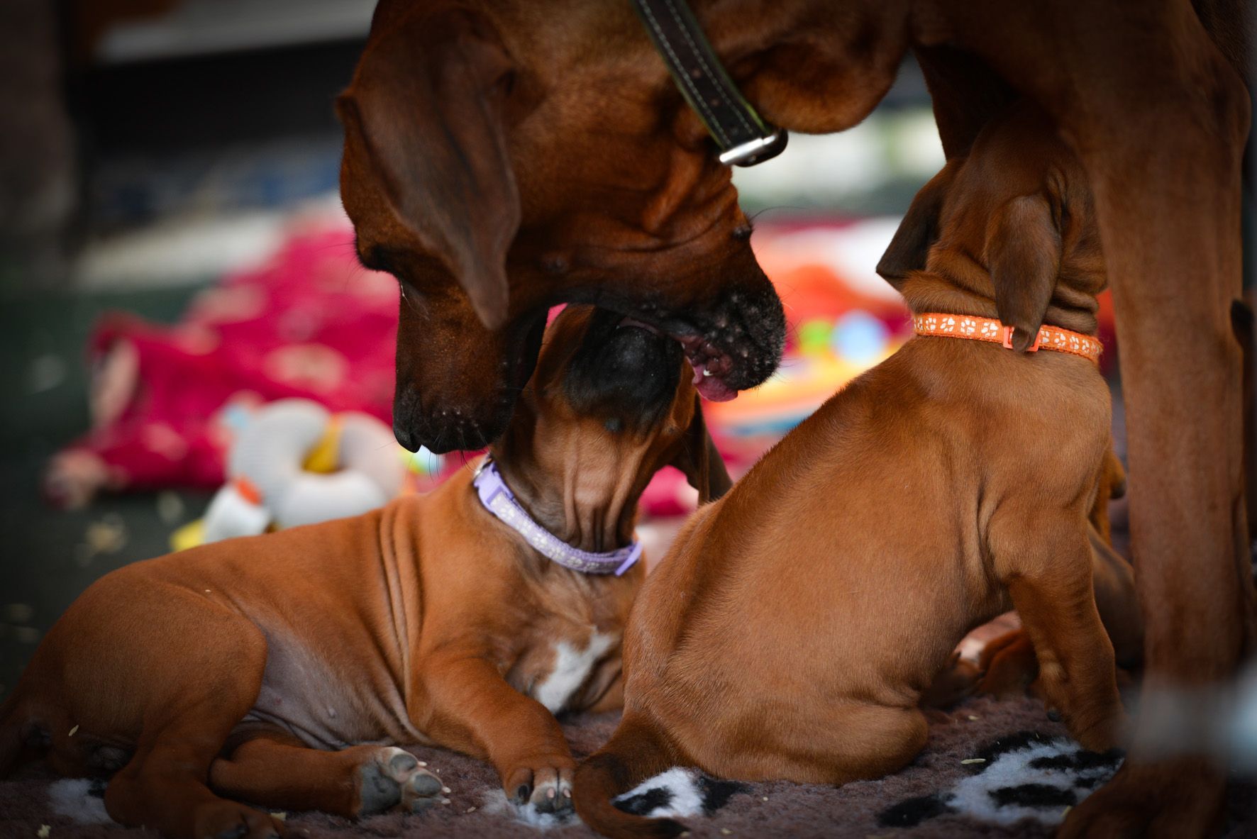 Am 20.03.2025 hat July ( Jokasana Baghira FCI) 9 wunderschöne RidgeTräger geboren. Julchen hat die Kleinen ganz entspannt und ohne Komplikationen zur Welt gebracht. Gerne könnt ihr Ihre Hompage unter: www.rhoen-ridgebacks.de besuchen.
